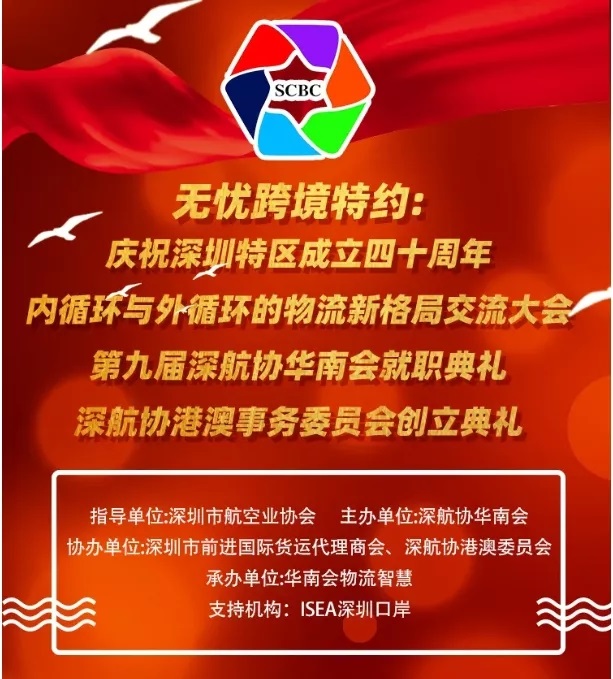 無憂跨境特約: 慶祝深圳特區成立四十周年 內循環與外循環的物流新格 局 交流大會 第九屆深航協華南會就職典禮 深航協港澳事務委員會創立典禮