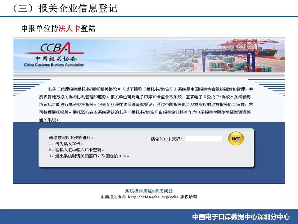 2、瀏覽器請使用IE8的配置;使用電子口岸IC卡登錄系統,報關企業信息登記/變更請用法人卡,發起委托可以是操作員卡;