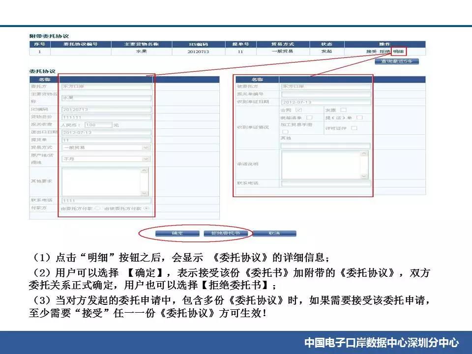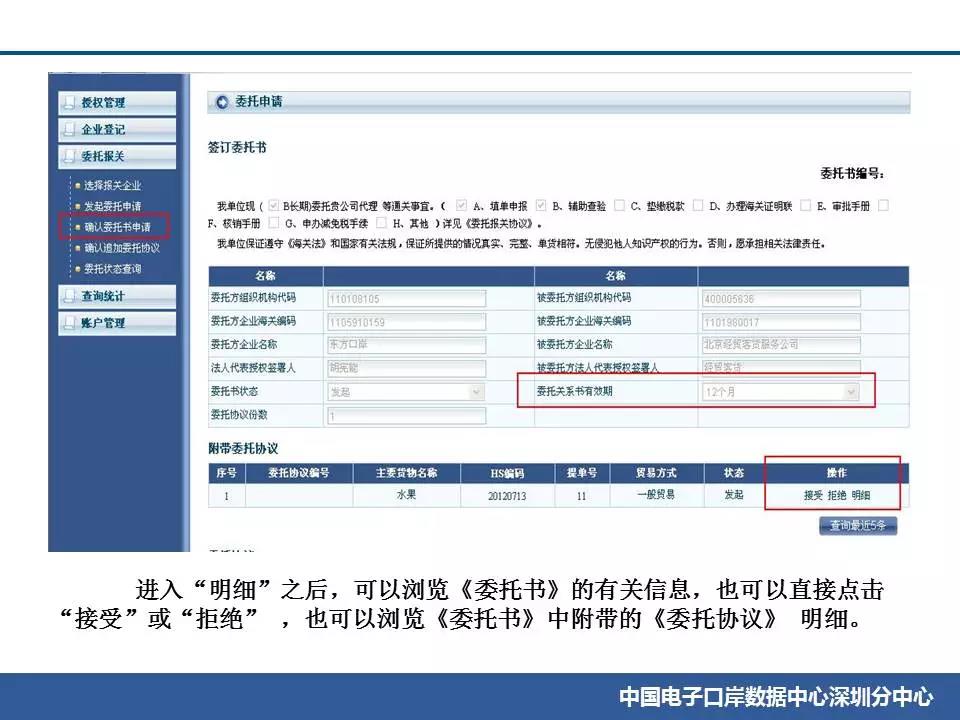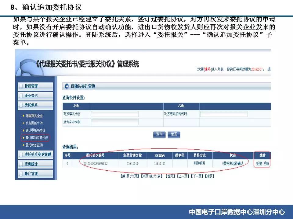 指引進出口貨物收發貨人在“委托報關”模塊中的“確認追加委托協議”和“確認委托書申請”兩個功能中,分別查看一次。如仍無記錄,可能是對方未正確發起委托或數據出現異常。